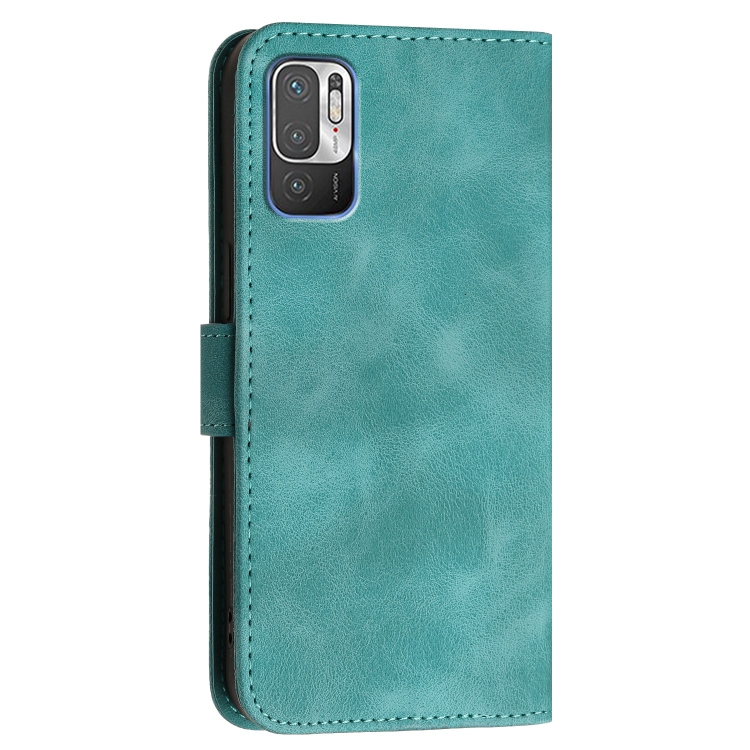Para Redmi Note 10 Je Versión Yx0080 Funda de Cuero con Tapa con Patrón En Relieve de Mariposa y Cuadrícula con Cordón (Azul Claro)