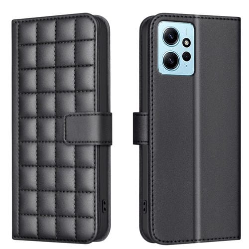 Para Redmi Note 12 4G Funda de Cuero para Teléfono con Textura Cuadrada Global (Negro)