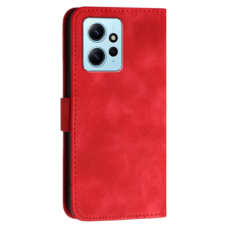 Para Redmi Note 12 4G Yx0080 Grid Butterfly Patrón En Relieve Funda de Cuero con Tapa para Teléfono con Cordón (Rojo)