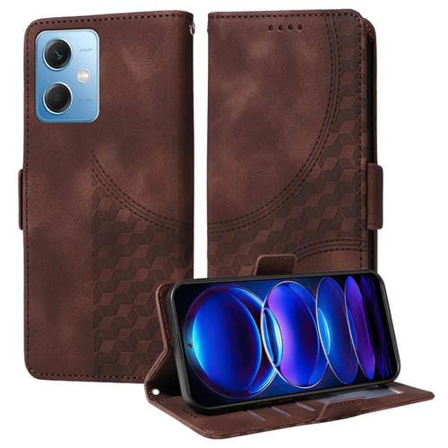 Para Redmi Note 12 5G Funda para Teléfono de Cuero Estrellado con Rombo En Relieve Global (Marrón)