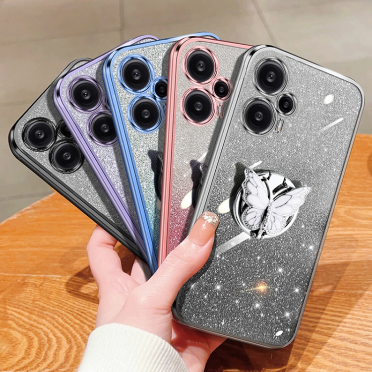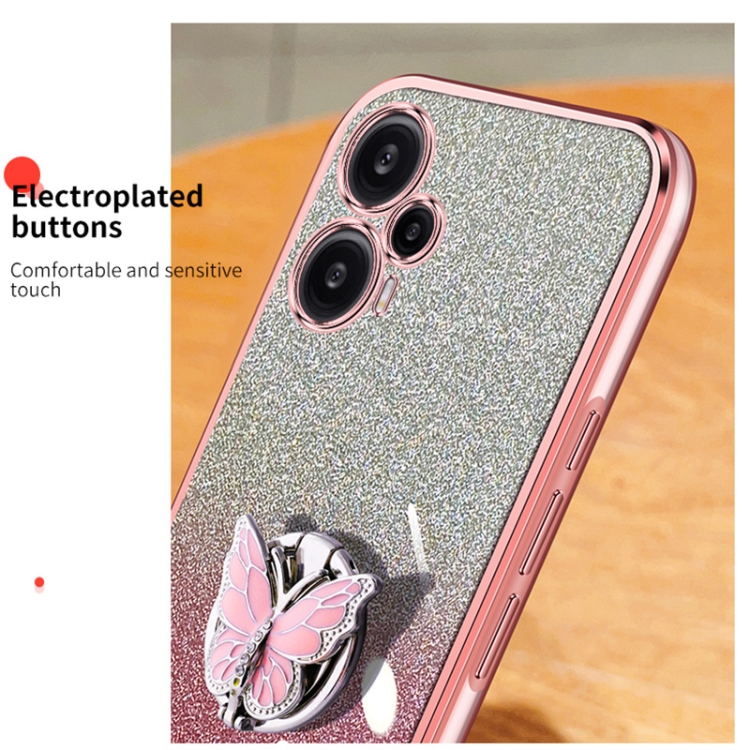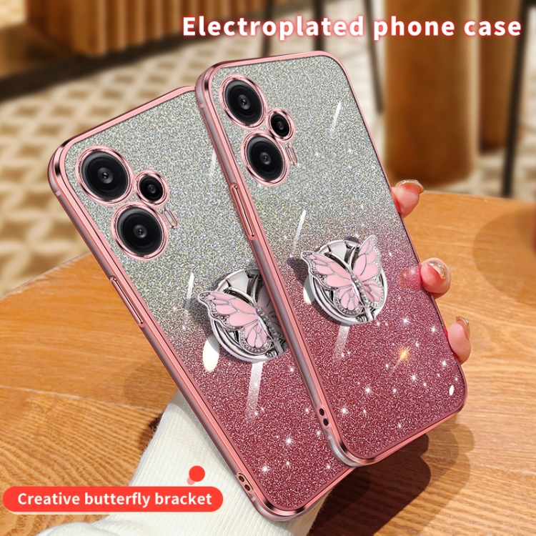 Para Redmi Note 12 Funda para Teléfono de TPU con Soporte de Mariposa con Brillo Degradado Turbo Plateado (Plata)