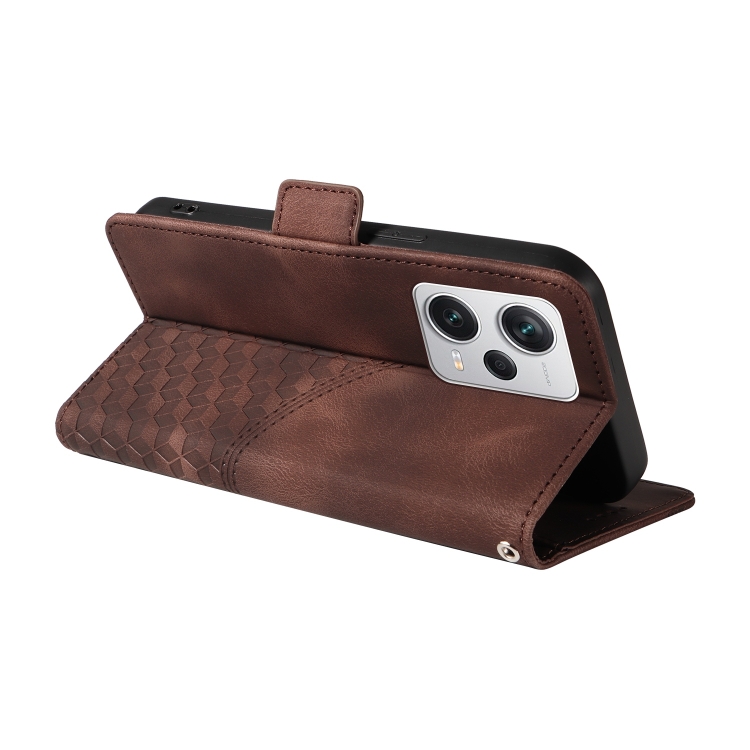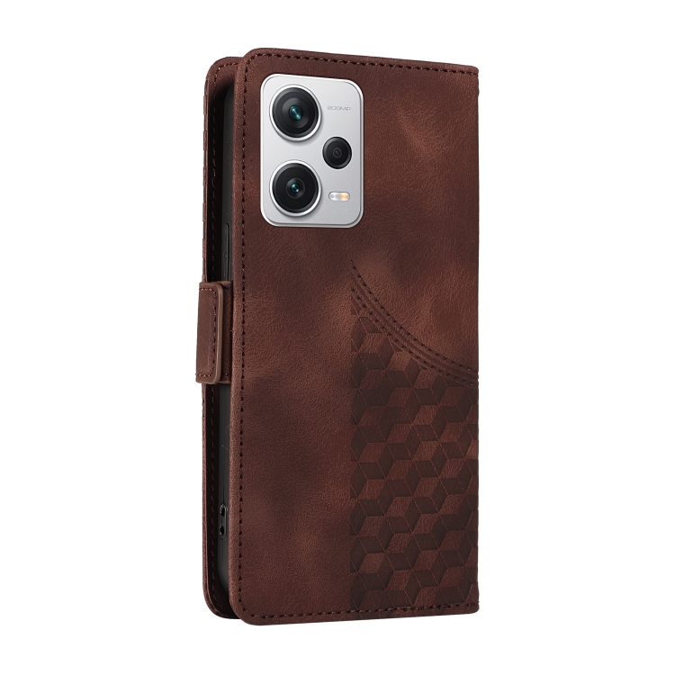 Para Redmi Note 12 Pro + Funda para Teléfono de Cuero Estrellado con Rombo En Relieve Global (Marrón)