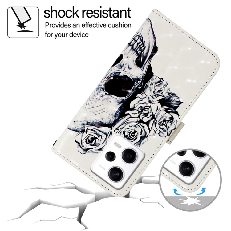 Para Redmi Note 12 Pro Speed 3D Painting Funda de Cuero con Tapa Horizontal para Teléfono (Calavera)