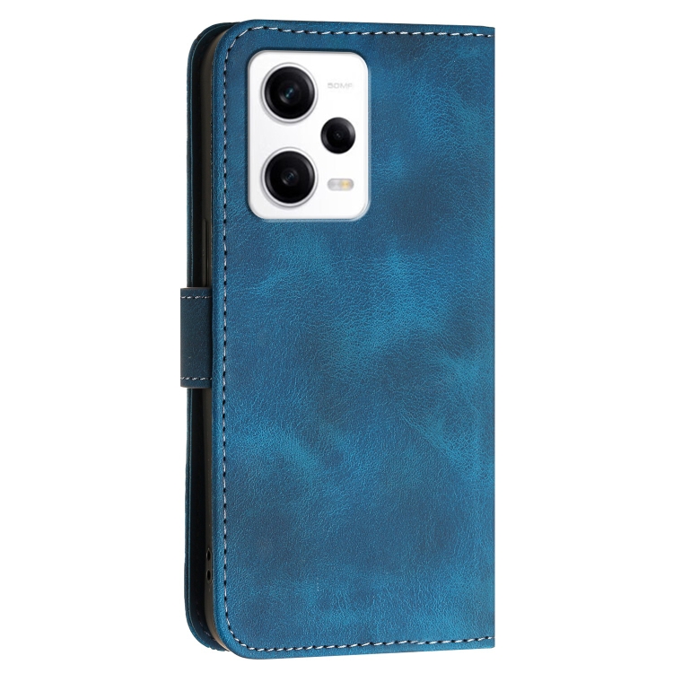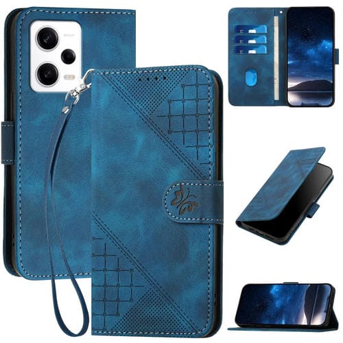 Para Redmi Note 12 Pro+ Yx0080 Funda de Cuero con Tapa y Patrón En Relieve de Mariposa En Cuadrícula con Cordón (Azul Oscuro)