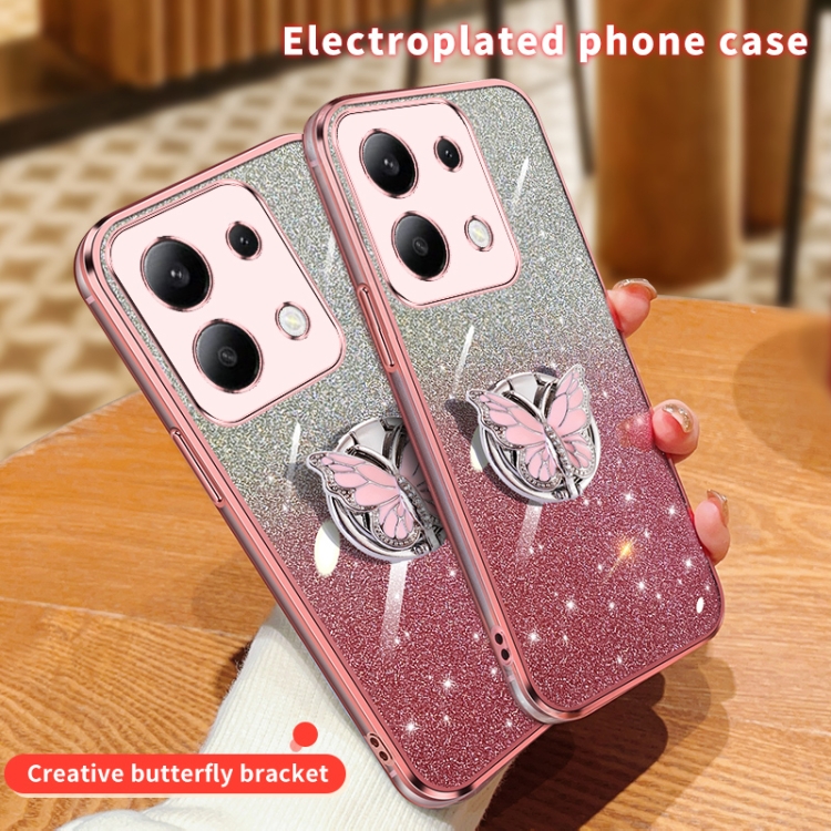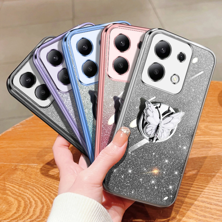 Para Redmi Note 13 4G Funda para Teléfono de TPU con Soporte de Mariposa con Brillo Degradado Plateado (Púrpura)