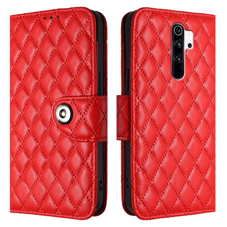 Para Redmi Note 8 Funda de Cuero con Tapa con Textura Rómbica y Cordón (Rojo)
