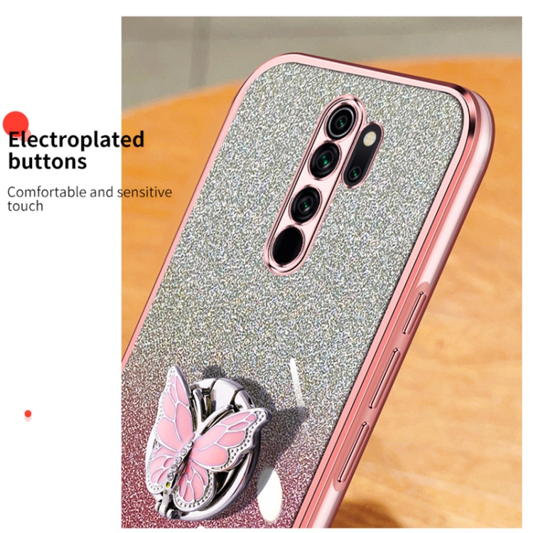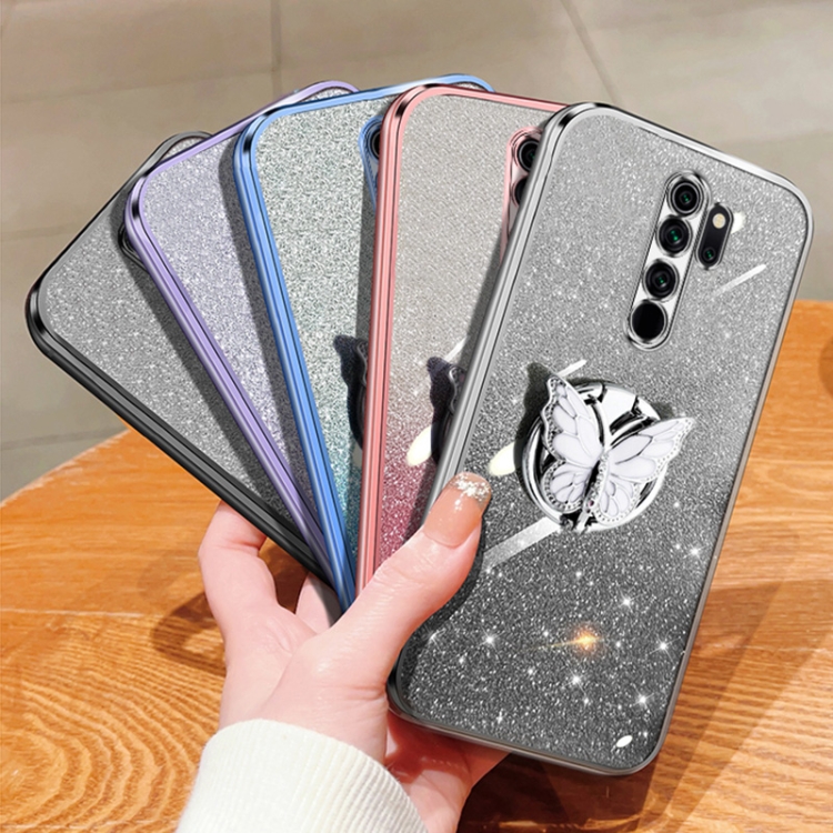 Para Redmi Note 8 Pro Funda para Teléfono de TPU con Soporte de Mariposa con Brillo Degradado Plateado (Púrpura)