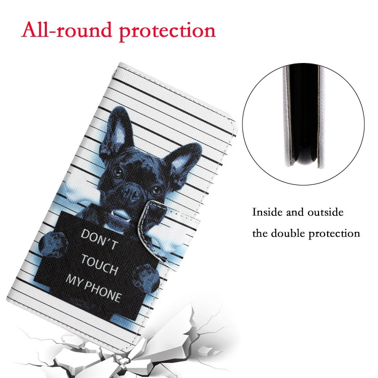 Para Samsung Galaxy A03s Funda de teléfono de cuero con dibujo coloreado (perro negro)