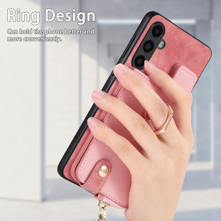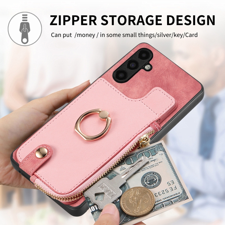 Funda para Teléfono Samsung Galaxy A04 4G con Anillo Cuero Cruzado Cremallera y Billetera (Rosa)