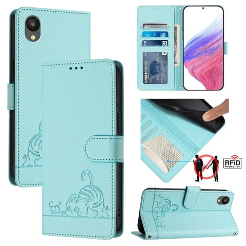 Estuche para Teléfono Samsung Galaxy A04 Core / A03 Core 4G Cuero Rfid Patrón En Relieve y Cordón (Verde Menta)