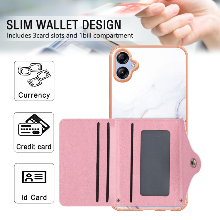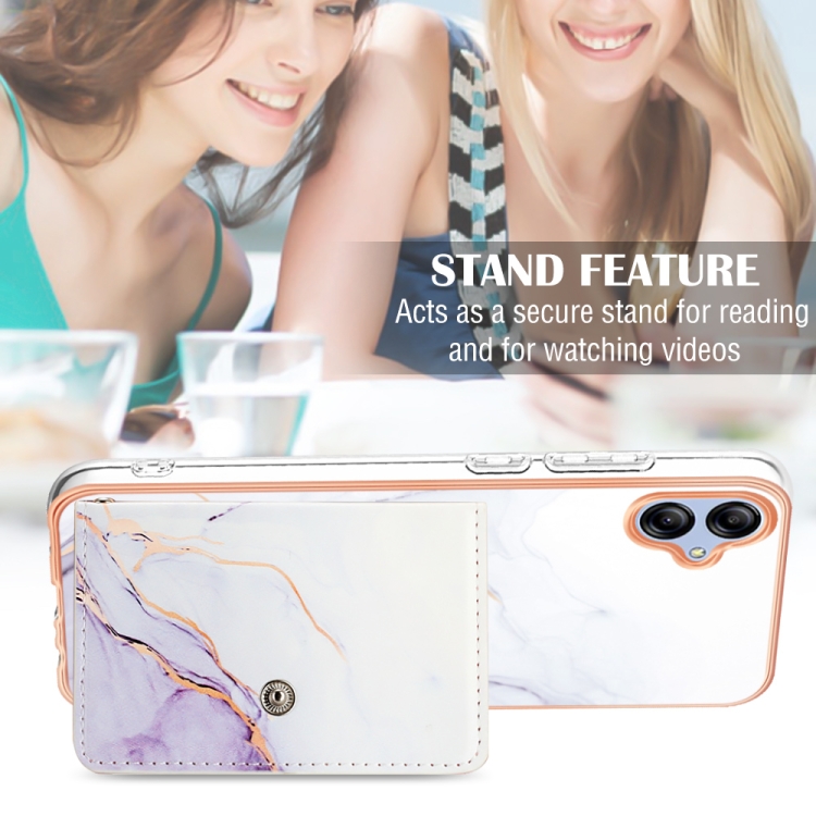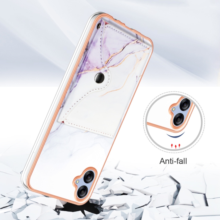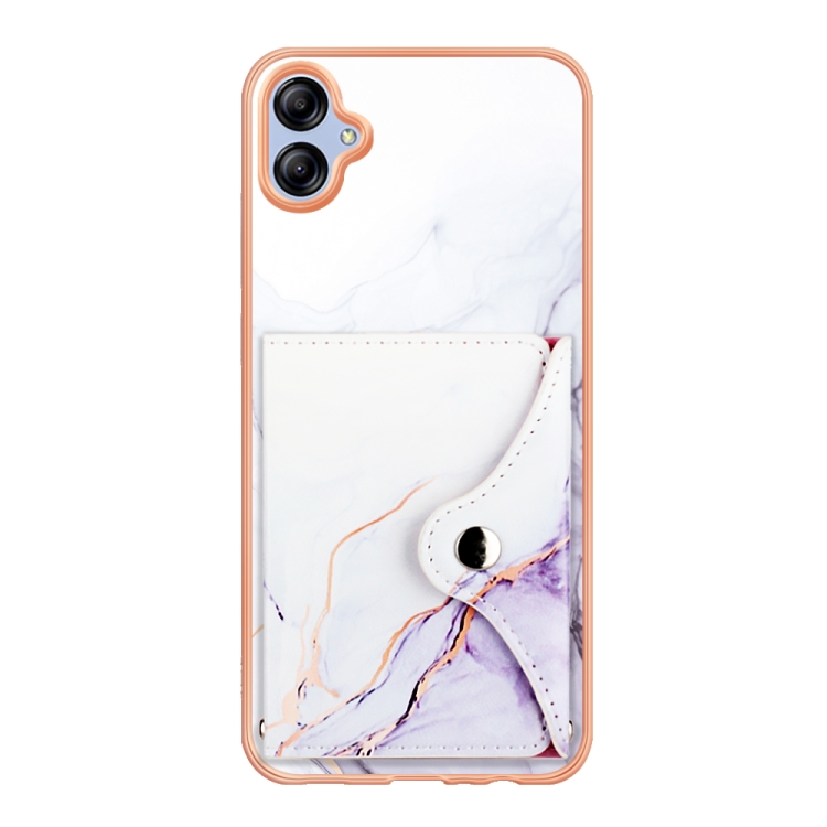 Estuche para Teléfono Samsung Galaxy A04E con Ranura para Tarjeta Imd y Patrón de Mármol (Blanco y Morado)