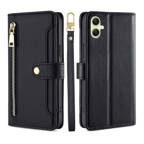Funda de Cuero Samsung Galaxy A05 4G Lite con Billetera y Cremallera Cuerpo Cruzado (Negro)