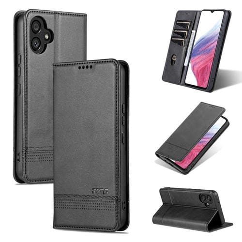 Funda para Teléfono Samsung Galaxy A05 Azns Cuero con Tapa Textura de Becerro Magnética (Negro)