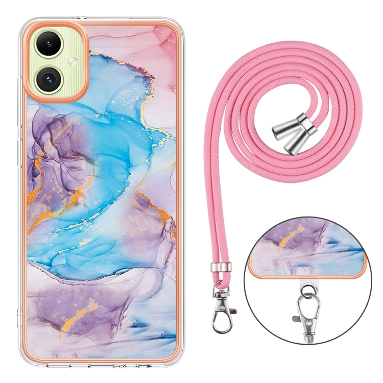Funda para Samsung Galaxy A05 Imd TPU con Galvanoplastia y Cordón (Mármol Azul)