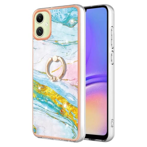 Funda para Samsung Galaxy A05 Imd TPU Mármol Galvanizado con Soporte para Anillo (Verde)