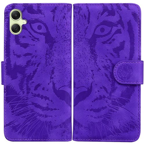 Funda de Teléfono Samsung Galaxy A05 Cuero con Tapa Patrón Relieve Tigre (Púrpura)