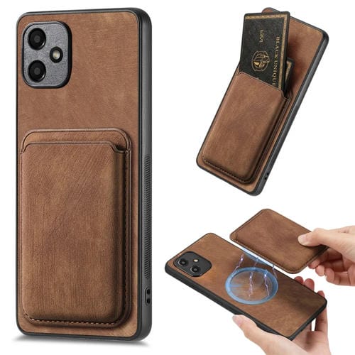 Funda de Teléfono Samsung Galaxy A05 Magnética con Bolso de Tarjeta Cuero Retro (Marrón)