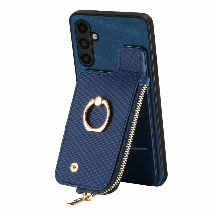 Funda para Teléfono Samsung Galaxy A05 con Anillo Cuero Cruzado Cremallera Vertical y Billetera Trasera (Azul)