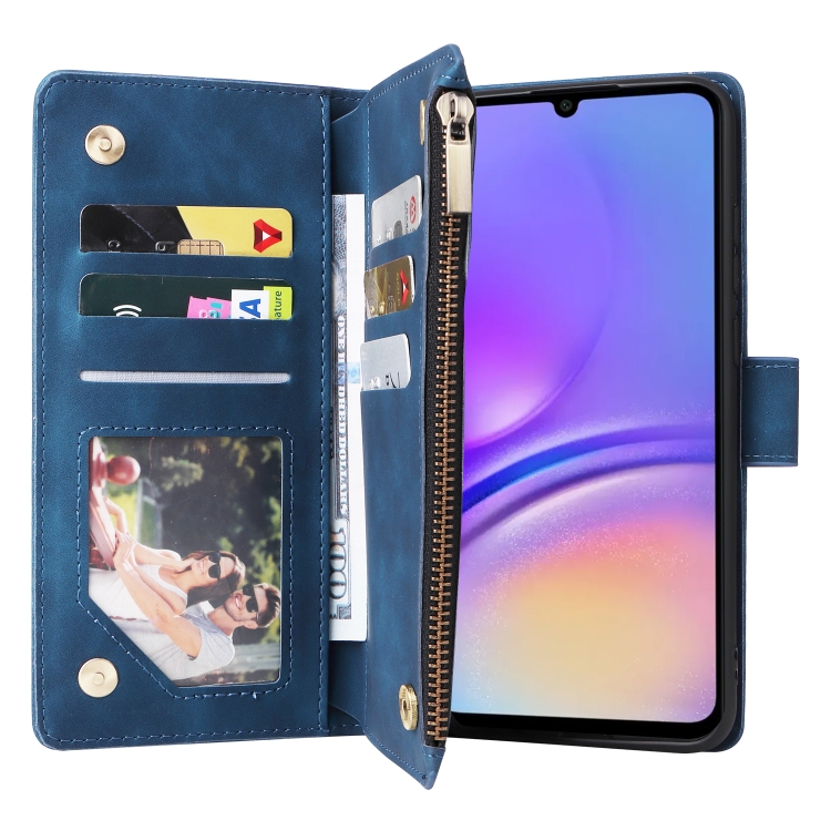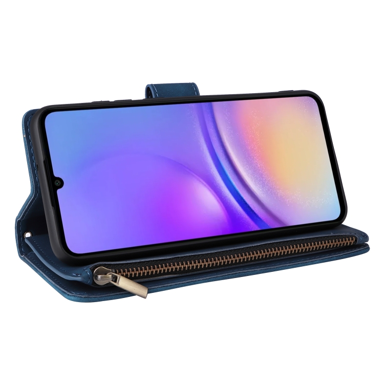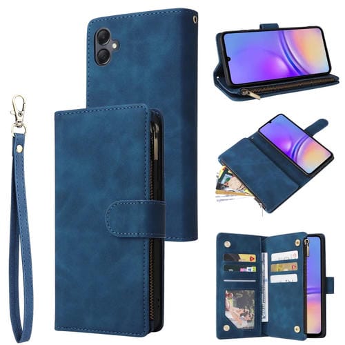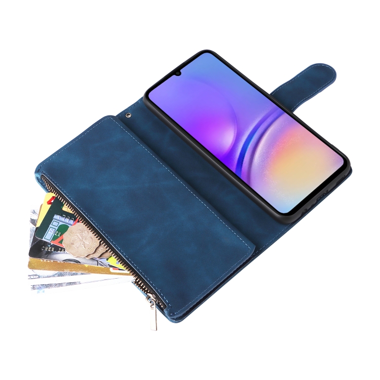 Funda para Teléfono Samsung Galaxy A05 Cuero con Billetera y Cremallera Multifuncional (Azul)