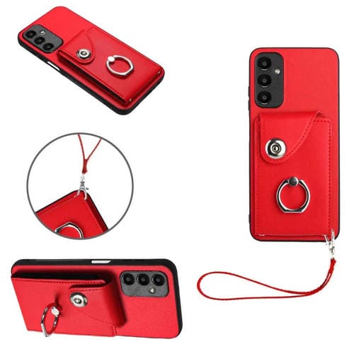 Funda para Teléfono Samsung Galaxy A05S 4G Organ Card Bag Ring Holder con Cordón (Rojo)