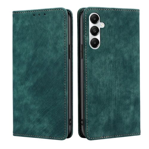 Funda de Teléfono Samsung Galaxy A05S 4G Cuero Magnético Rfid con Cepillo Antirrobo (Verde)