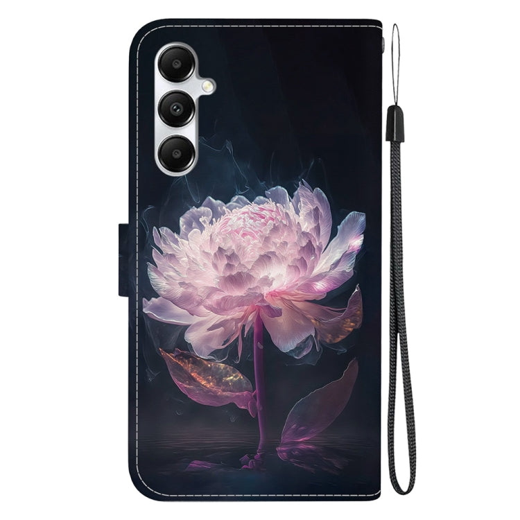 Estuche de Cuero Samsung Galaxy A05S con Dibujo Coloreado y Textura de Cristal (Peonía Púrpura)