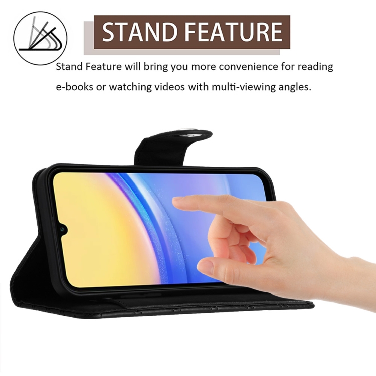 Funda de Cuero para Samsung Galaxy A05S con Tapa Textura Rómbica y Cordón Largo (Negro)
