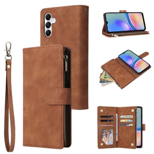 Funda para Teléfono Samsung Galaxy A05S Cuero con Billetera y Cremallera Esmerilada Multifuncional (Marrón)