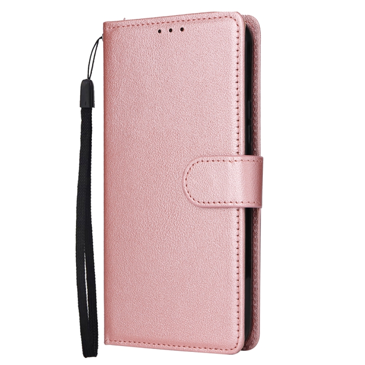 Funda para Teléfono Samsung Galaxy A05S Cuero Tapa Horizontal Multifuncional Tres Ranuras para Tarjetas (Oro Rosa)