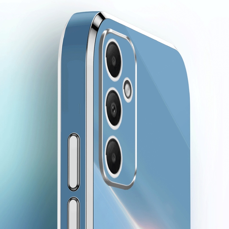 Estuche para Teléfono Samsung Galaxy A05S Xinli Straight Edge 6D TPU Electrochapado con Soporte para Anillo (Azul Celestial)