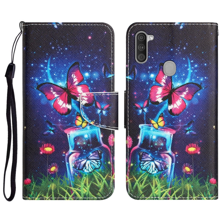 Para Samsung Galaxy A11 Estuche de teléfono de cuero con dibujo coloreado (mariposa de botella)