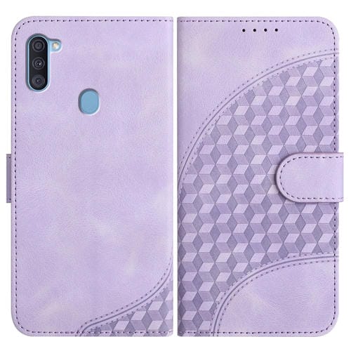 Funda de Cuero Samsung Galaxy A11 Versión UE Yx0060 con Relieve de Cabeza de Elefante y Cordón (Púrpura Claro)