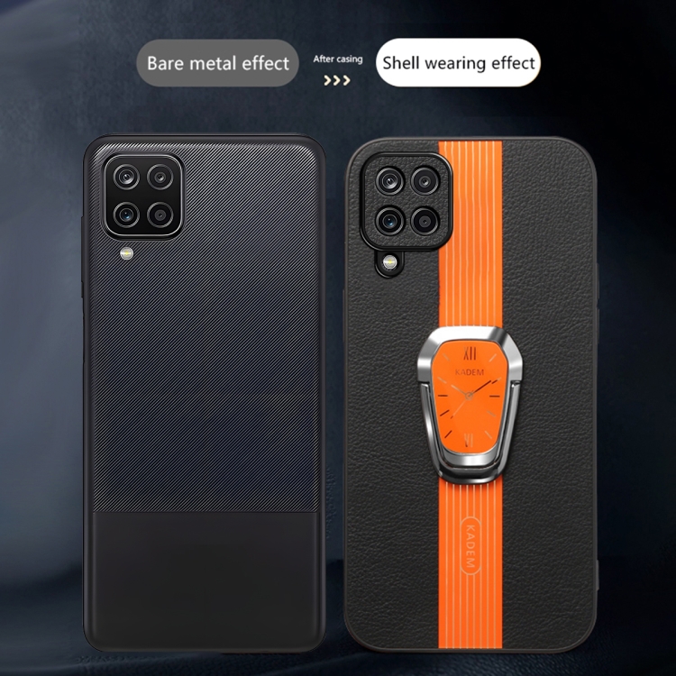 Funda para Teléfono Samsung Galaxy A12 4G Parte Trasera de Cuero Litchi Magnética con Soporte (Naranja)