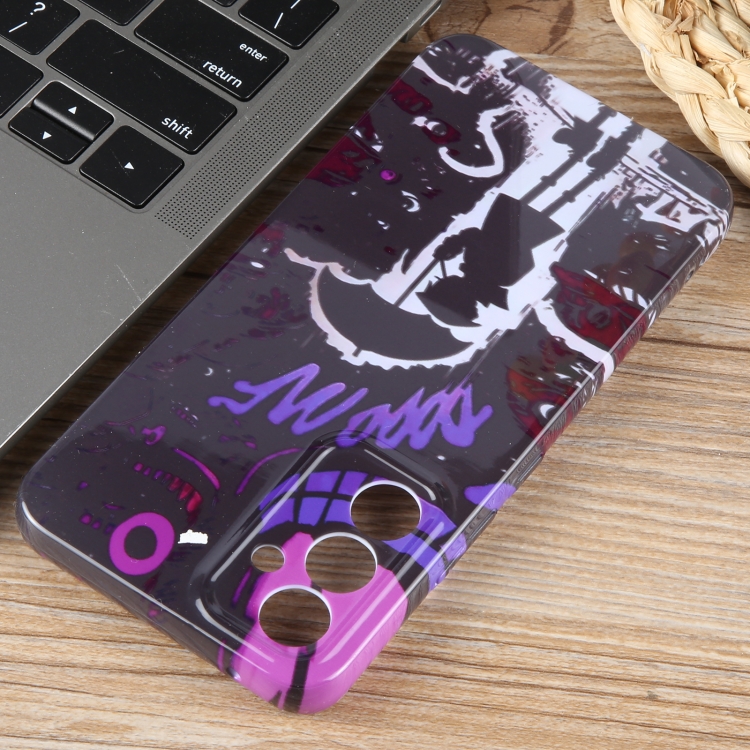 Estuche para Teléfono Samsung Galaxy A12 PC con Orificio Preciso y Patrón Pintado (Morado Negro)