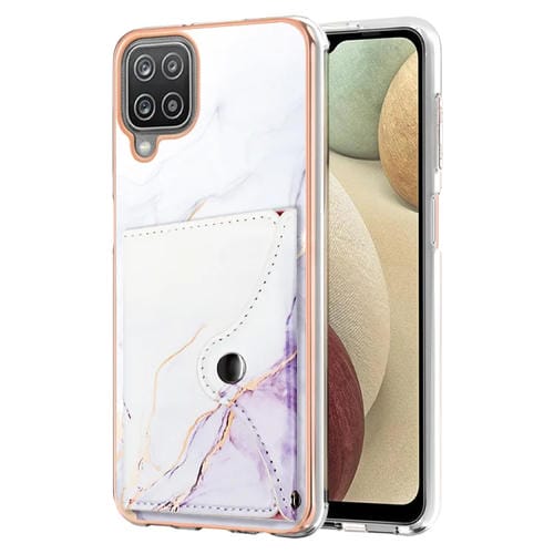Estuche para Teléfono Samsung Galaxy A12 con Ranura para Tarjeta Imd con Patrón de Mármol (Blanco y Morado)