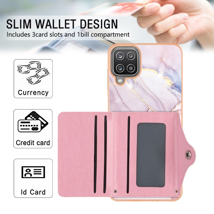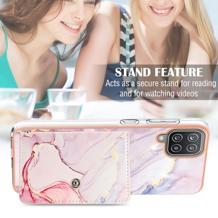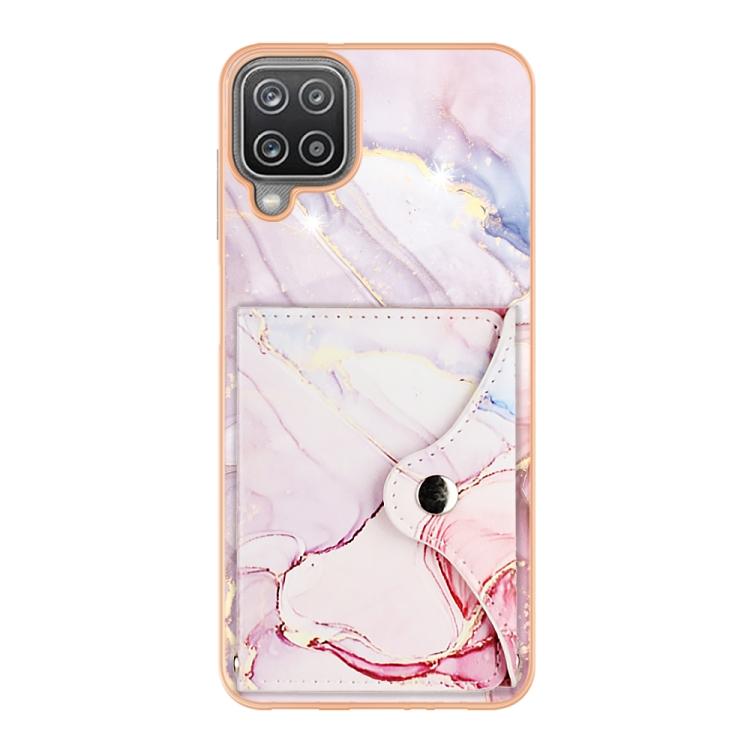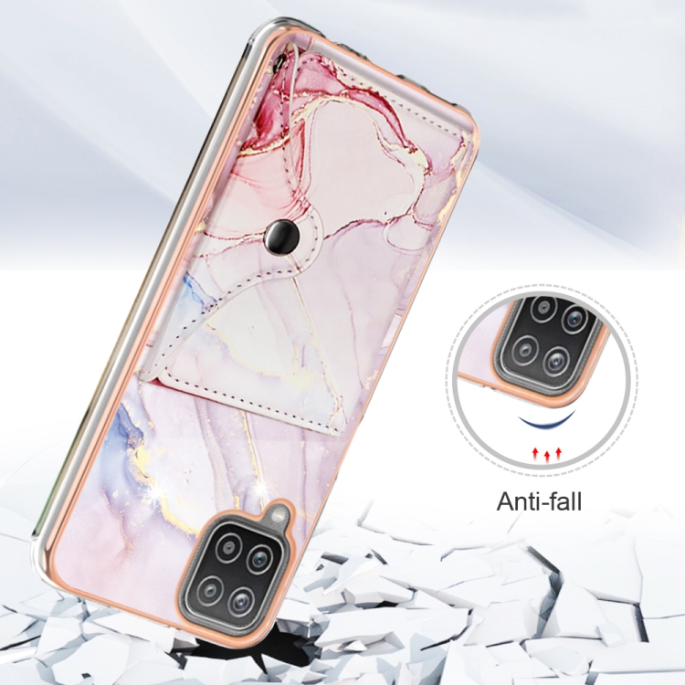 Estuche para Teléfono Samsung Galaxy A12 con Ranura para Tarjeta Imd con Patrón de Mármol (Oro Rosa)