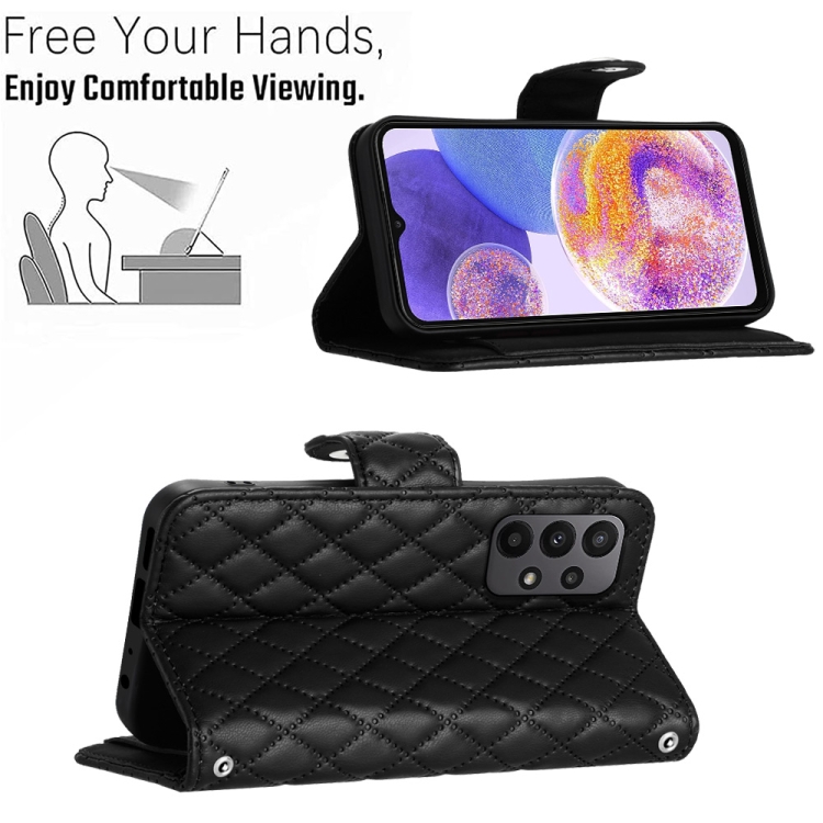 Funda para Samsung Galaxy A13 4G / 5G Cuero con Tapa Textura Rómbica y Cordón (Negro)