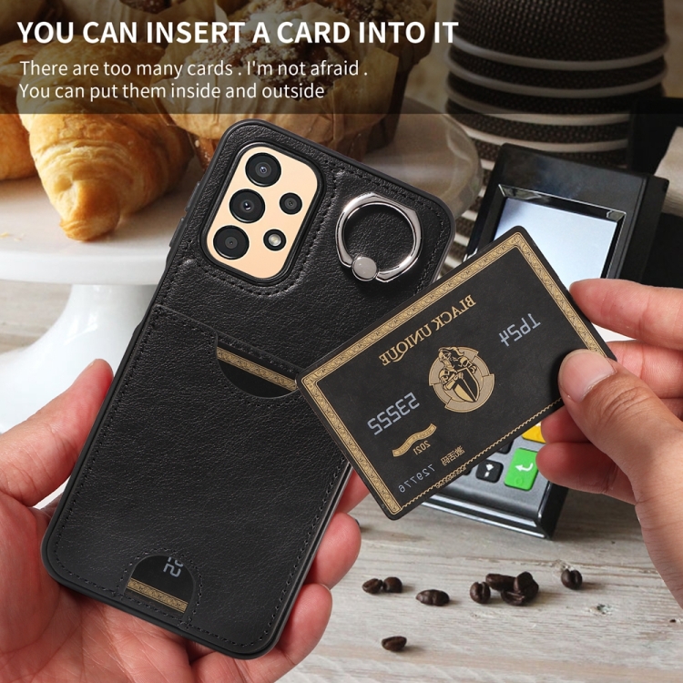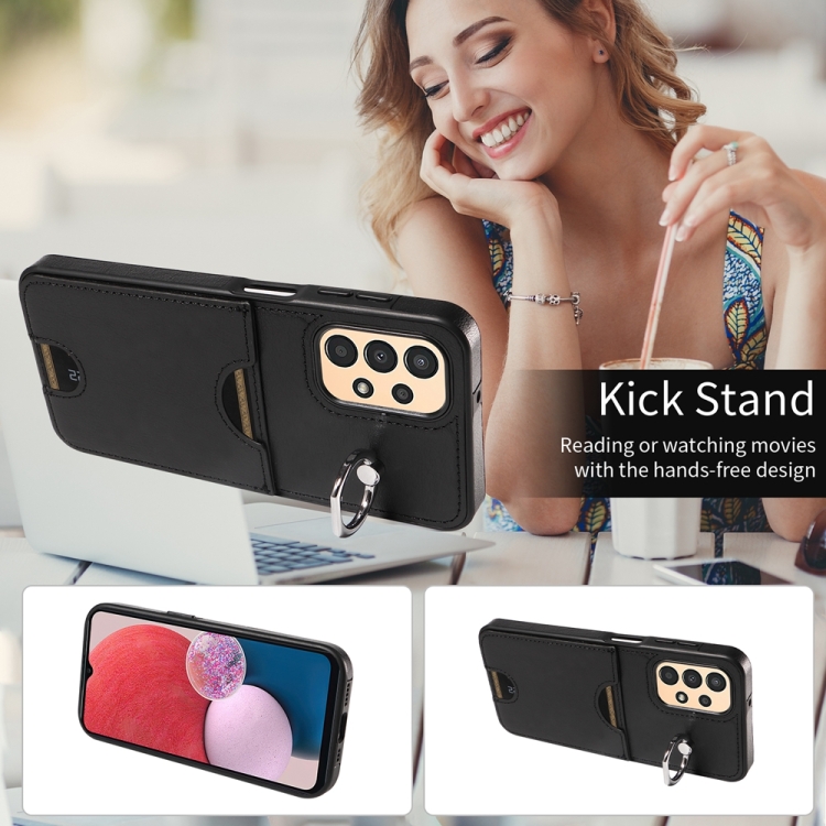 Funda para Teléfono Samsung Galaxy A13 4G con Soporte para Anillo y Ranura para Tarjeta (Negro)