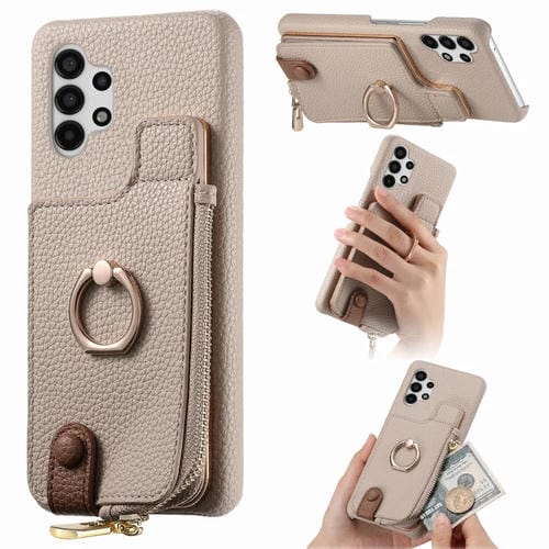 Funda para Samsung Galaxy A13 4G Litchi Leather Oil Edge Ring Zipper Wallet Back (Blanco)