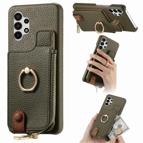 Funda para Samsung Galaxy A13 4G Litchi Leather Oil Edge Ring Zipper Wallet Back (Verde)