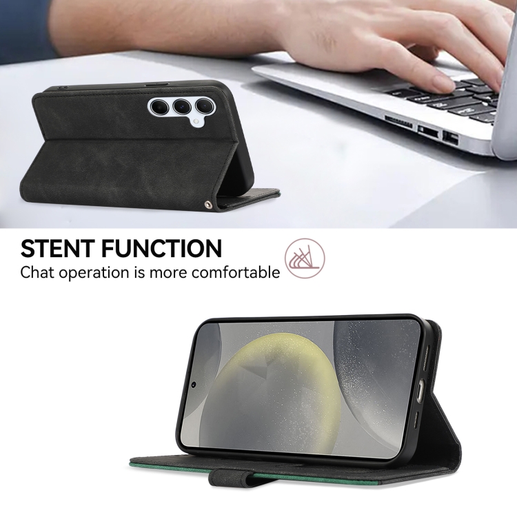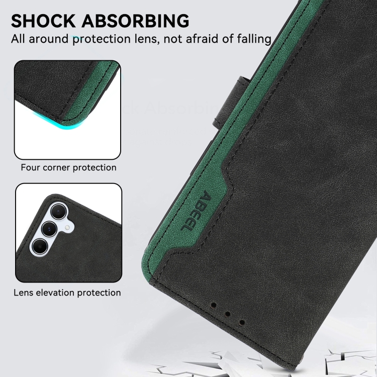 Funda de Cuero Abeel para Samsung Galaxy A13 5G y A04S Color Block Magnética Rfid (Negro-Verde)