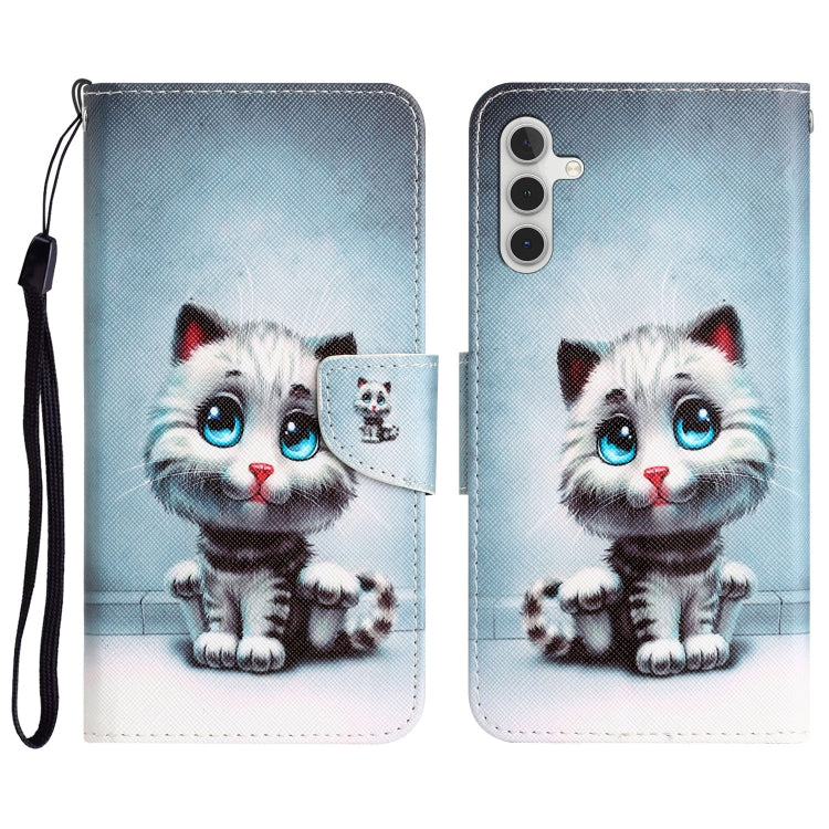 Para Samsung Galaxy A13 5G Estuche de teléfono de cuero con dibujo coloreado (ojos azules)