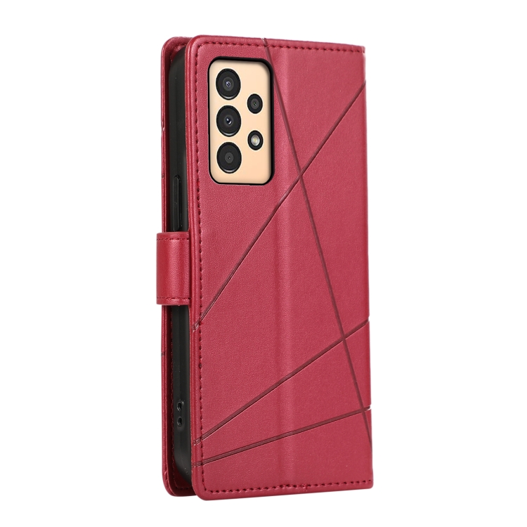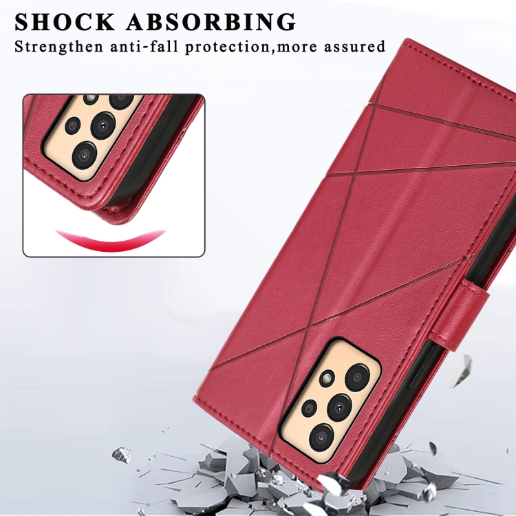 Funda para Teléfono Samsung Galaxy A13 PU con Línea en Relieve Textura Cuero Genuino (Rojo)