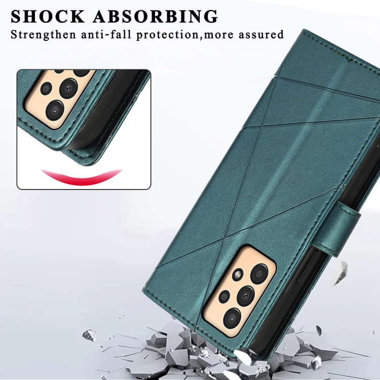 Funda para Teléfono Samsung Galaxy A13 Pu con Línea en Relieve y Textura de Cuero Genuino (Verde)