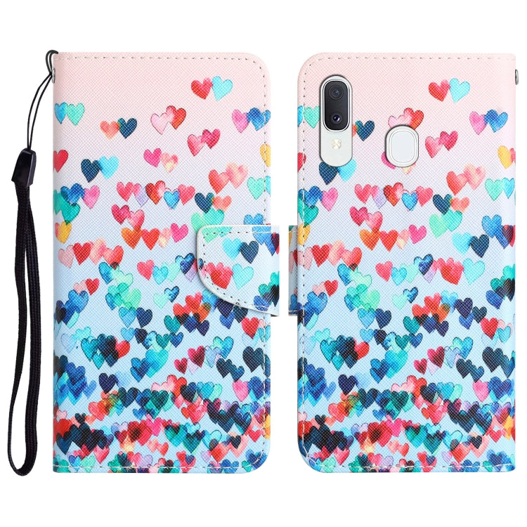 Para Samsung Galaxy A20 / A30 Estuche para teléfono de cuero con dibujo a color (Corazón)