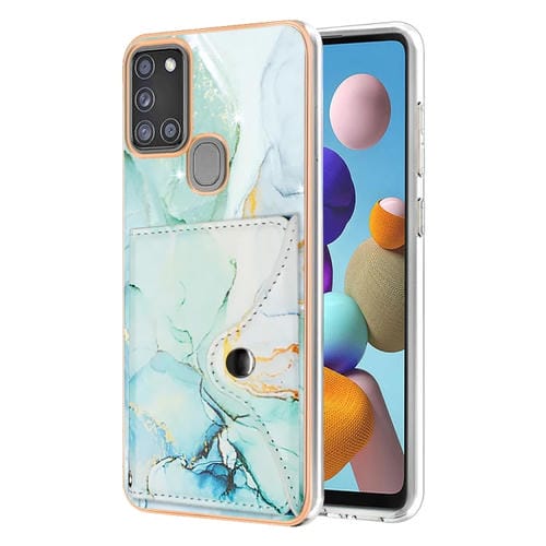 Estuche para Teléfono Samsung Galaxy A21S con Ranura para Tarjeta Imd Patrón Mármol (Verde)
