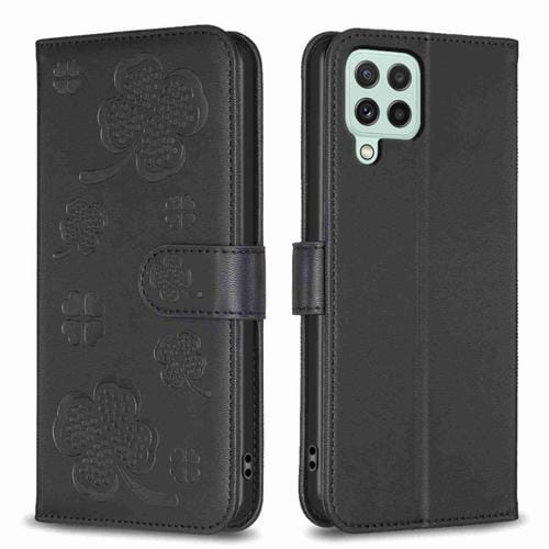 Funda para Samsung Galaxy A22 4G Cuero Relieve Cuatro Hojas (Negro)