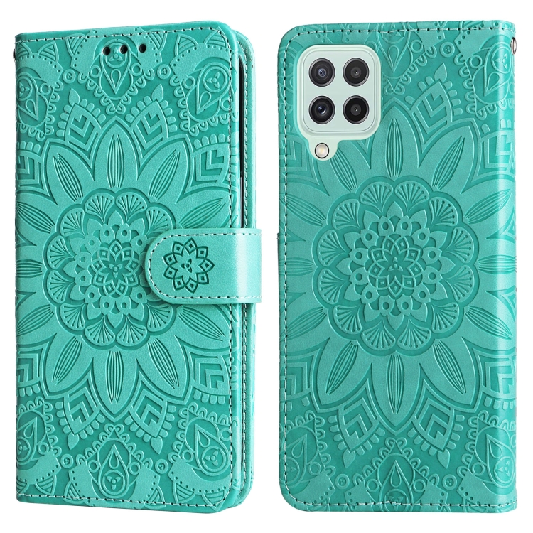 Funda para Samsung Galaxy A22 4G M22 M32 4G Global Relieve Sunflower Leather Phone Case (Verde)