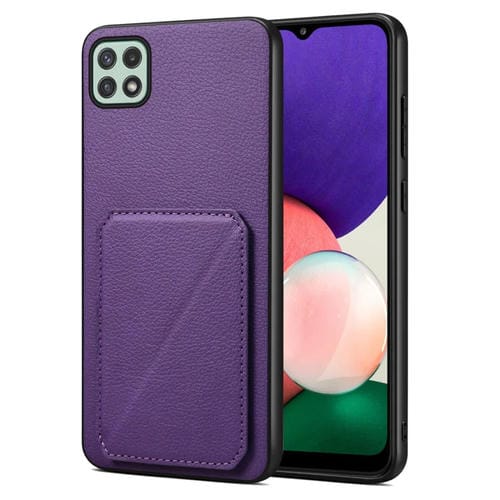 Funda Trasera Samsung Galaxy A22 5G Denior Piel de Becerro de Imitación con Soporte (Púrpura)
