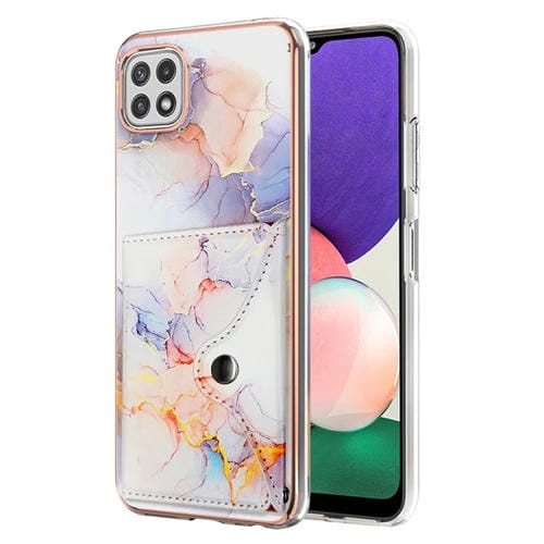 Estuche para Teléfono Samsung Galaxy A22 5G EE.UU con Ranura para Tarjeta y Patrón Mármol (Blanco)